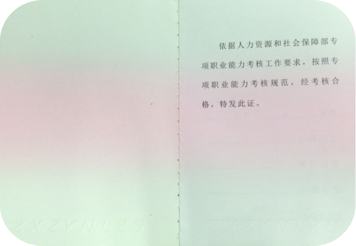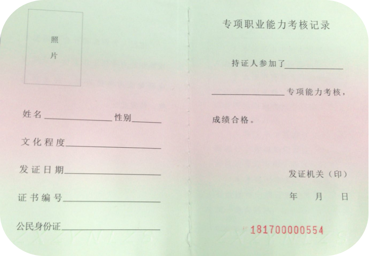2、专项职业能力空白证书按照人力资源和社会保障部统一样式,由省鉴定中心统一印制,统一管理,统一配发。